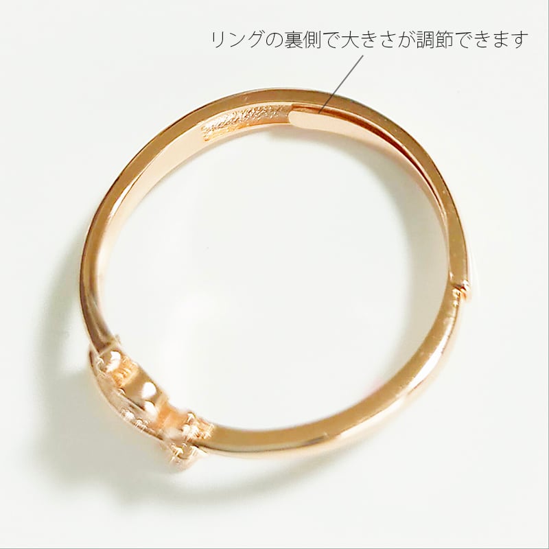 今までの調節可能リングは飛行機とストーンの部分が離れて調節するタイプでしたが、こちらは裏側で調節するためデザインが変わることなく自分のサイズで使えます。